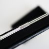Collar bar with a slight ribbed surface. Made in the USA these are hard ti find in the UK. 60mm long. They pull in the non button down collar like a tab. Just clip on. Boxed.